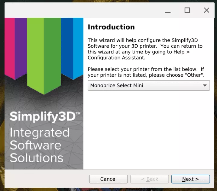 Step 1) Select your Printer or “Other” if not listed. In my case, I will be selecting the Monoprice Select Mini