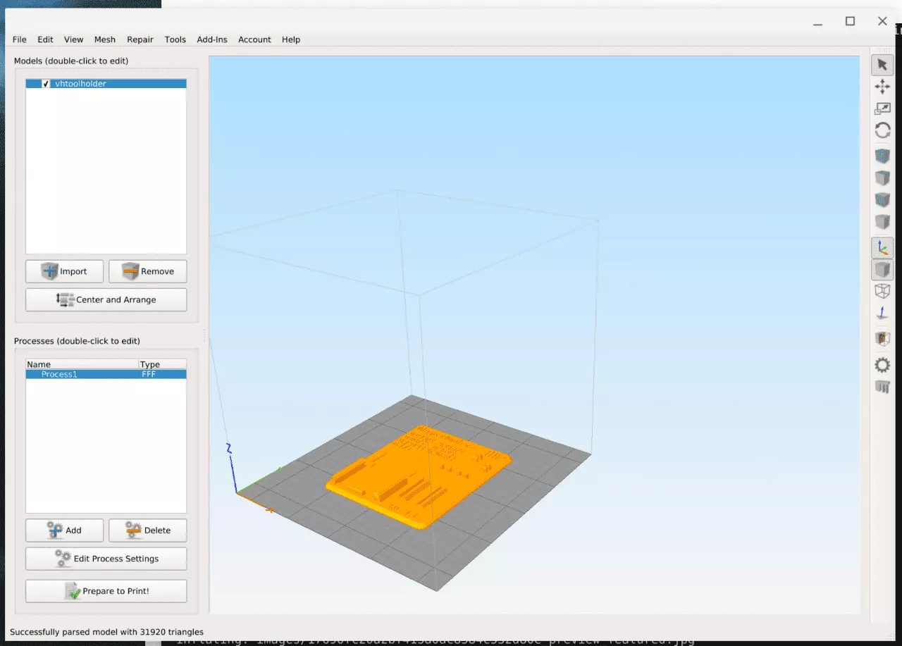 Step 2) Import the STL or OBJ file into Simplify 3D and set your materials/preferences in the “Process Settings”. You should also define raft and supports if needed.
