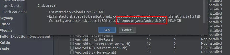Select “Android 9.0 (Pie)” and “Apply”. Make note of the “SDK Root” before selecting “Ok”. You will be presented with the licenses for the SDK