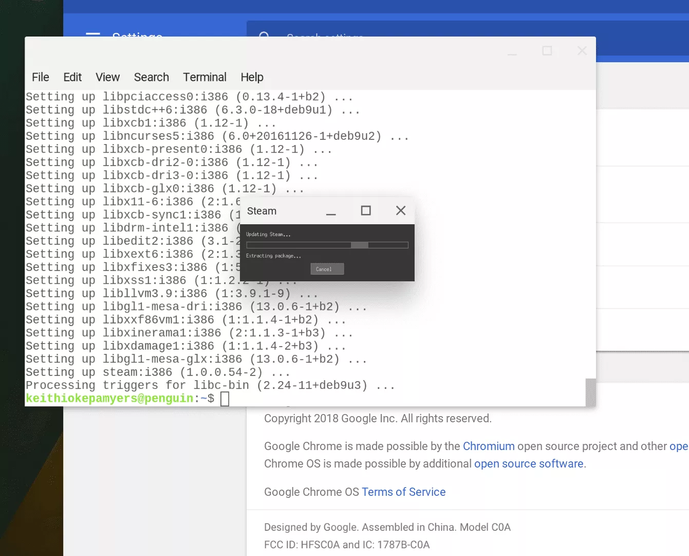 This guide is a bit more advanced than some of my previous ones so please ensure you are following all of my instructions exactly as written. The instructions are very similar to how you would install Steam on Debian but with a few small changes to prevent a few errors on ChromeOS (Specifically Google not having i386 support in their repositories) . If that sounds like a foreign language, no need to worry as long as you follow the steps below.