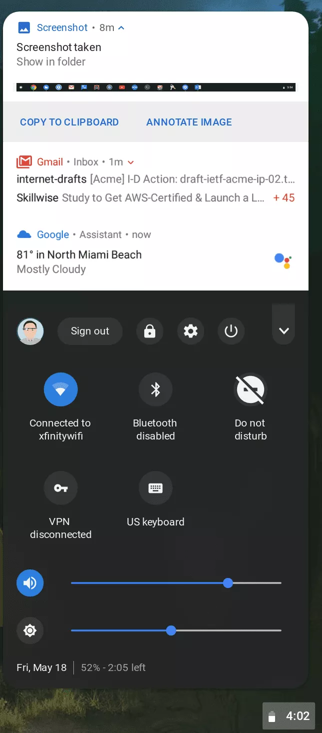 Google has implemented a few changes to simplify the bottom dock. This includes the removal of your profile photo and persistent application status icons (such as you may see with a VPN application). This is likely meant to simplify the shelf for future ChromeOS tablets. Note – These changes only impact those who have#enable-system-tray-unified enabled in chrome://flags