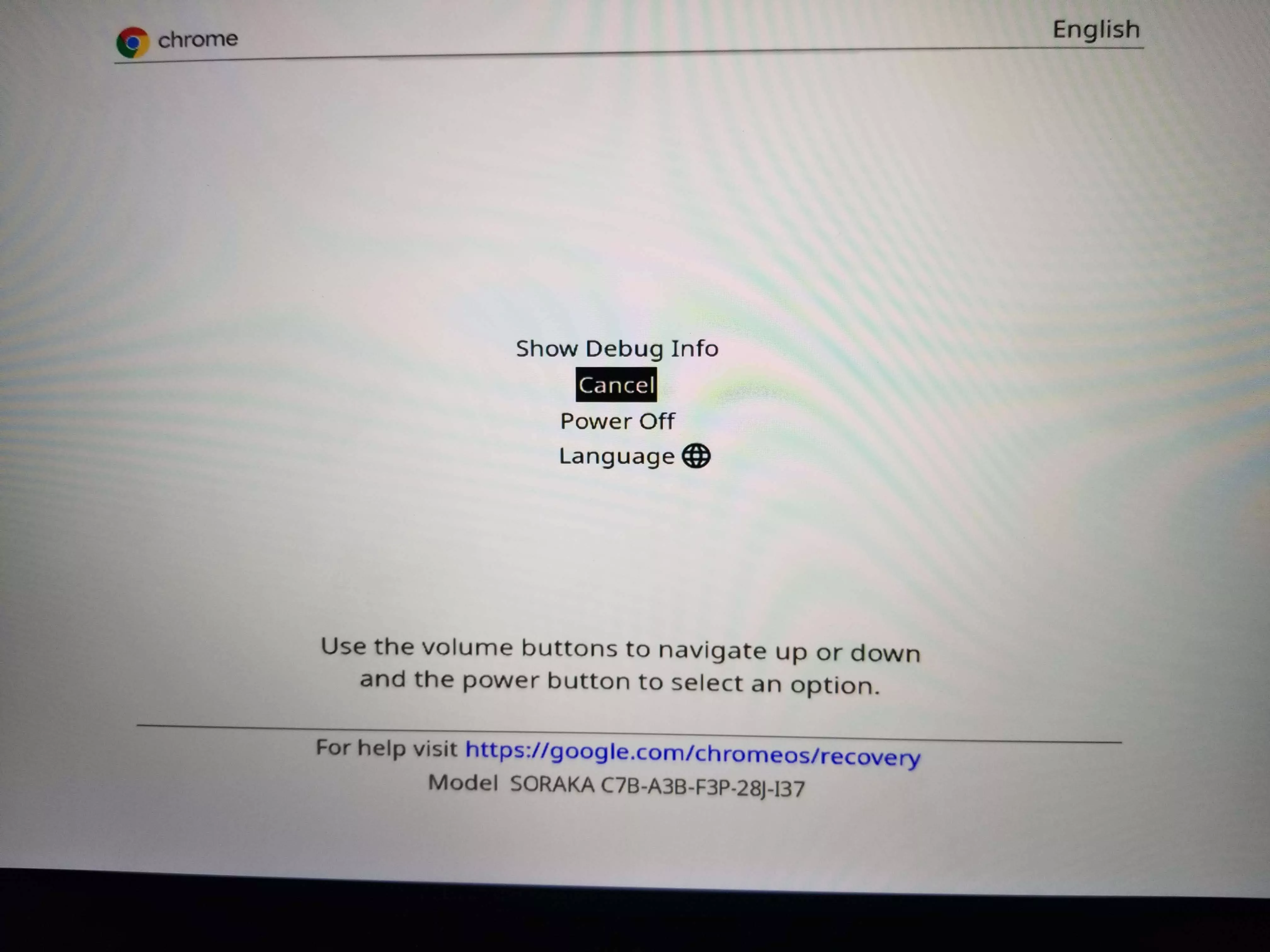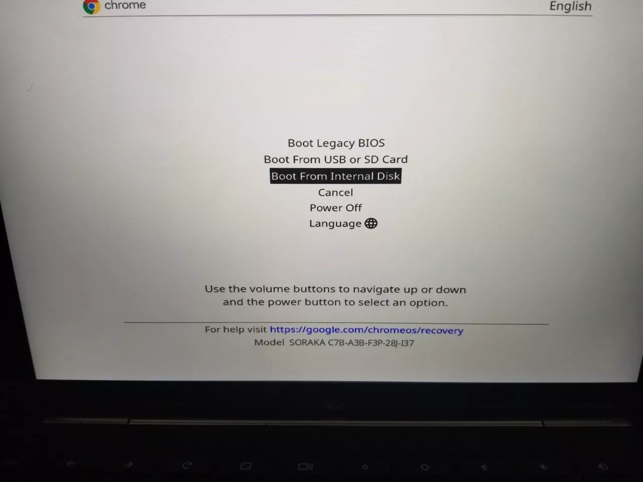 Step 3) Hold the Volume Up, Volume Down and Power Buttons Down for about 7 seconds – specifically until the charging indicator above the USB Type C Ports Flash White. You will be sent to the Chrome OS Recovery Menu.