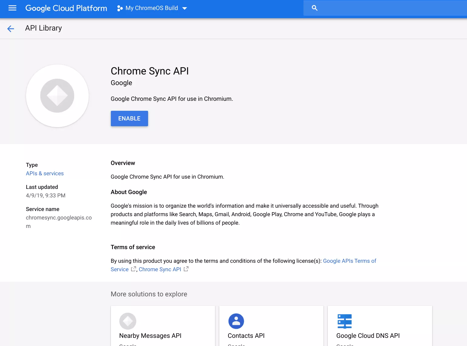 - Drive API (Optional, enable this for Files.app on Chrome OS and SyncFileSystem API)
