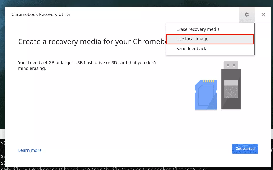 Launch the Chromebook Recovery Tool and select “Use Local Image”