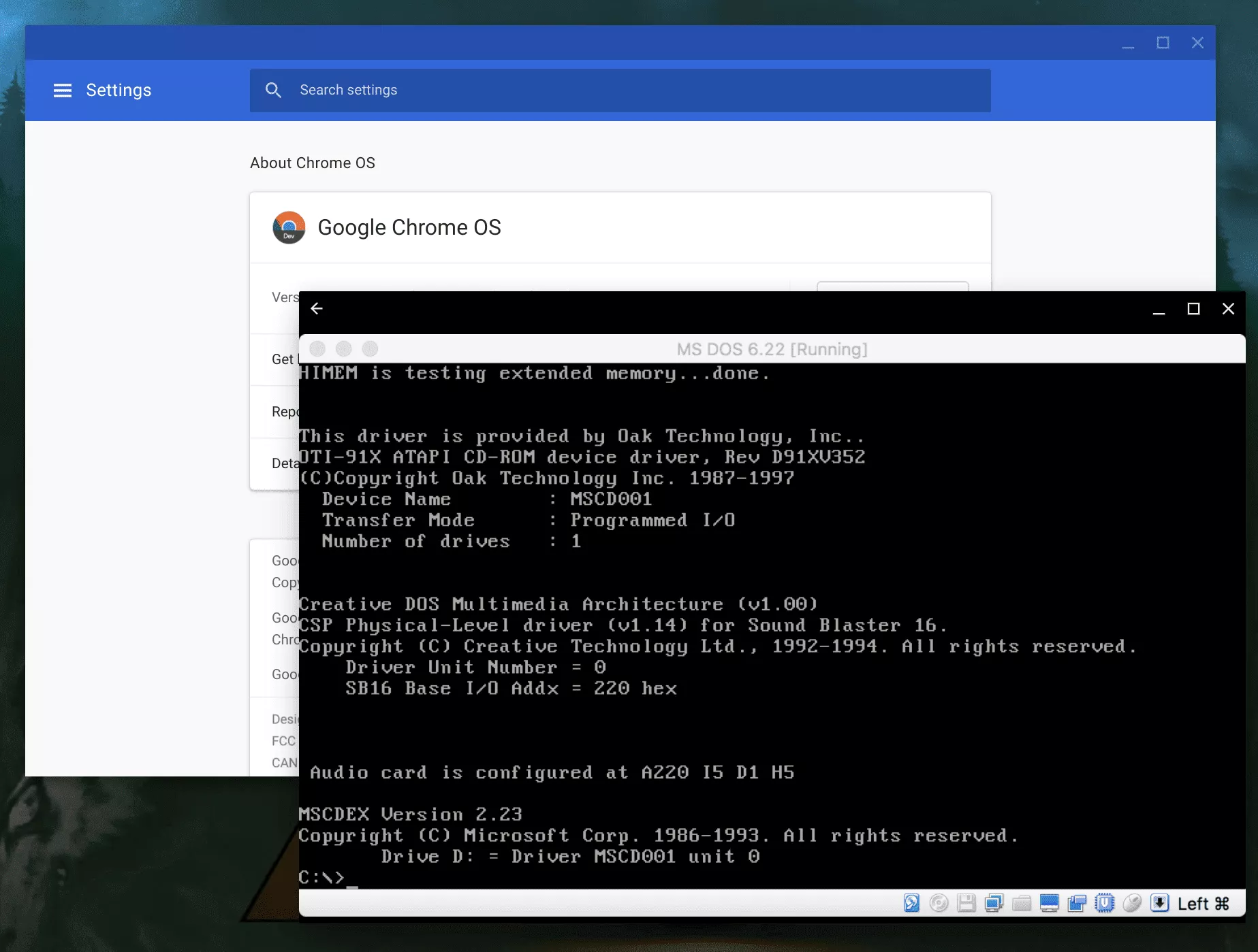 ChromeOS 74.0.L337.0 Rolling out to the Dev Channel – Enables MS-DOS Mode with Full CGI Graphic Stack