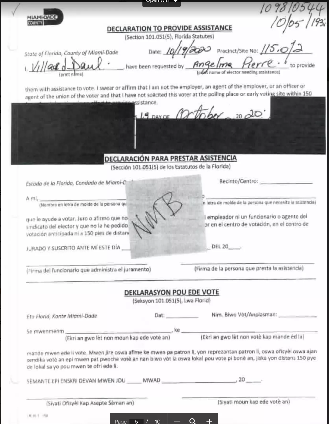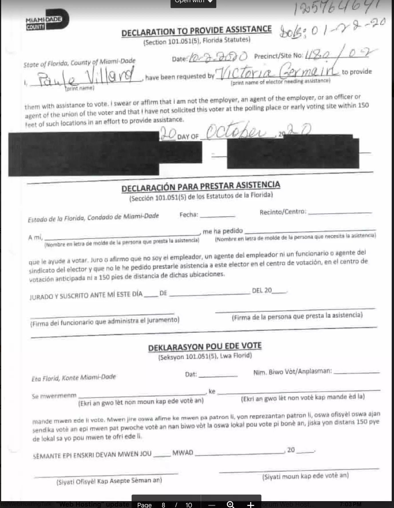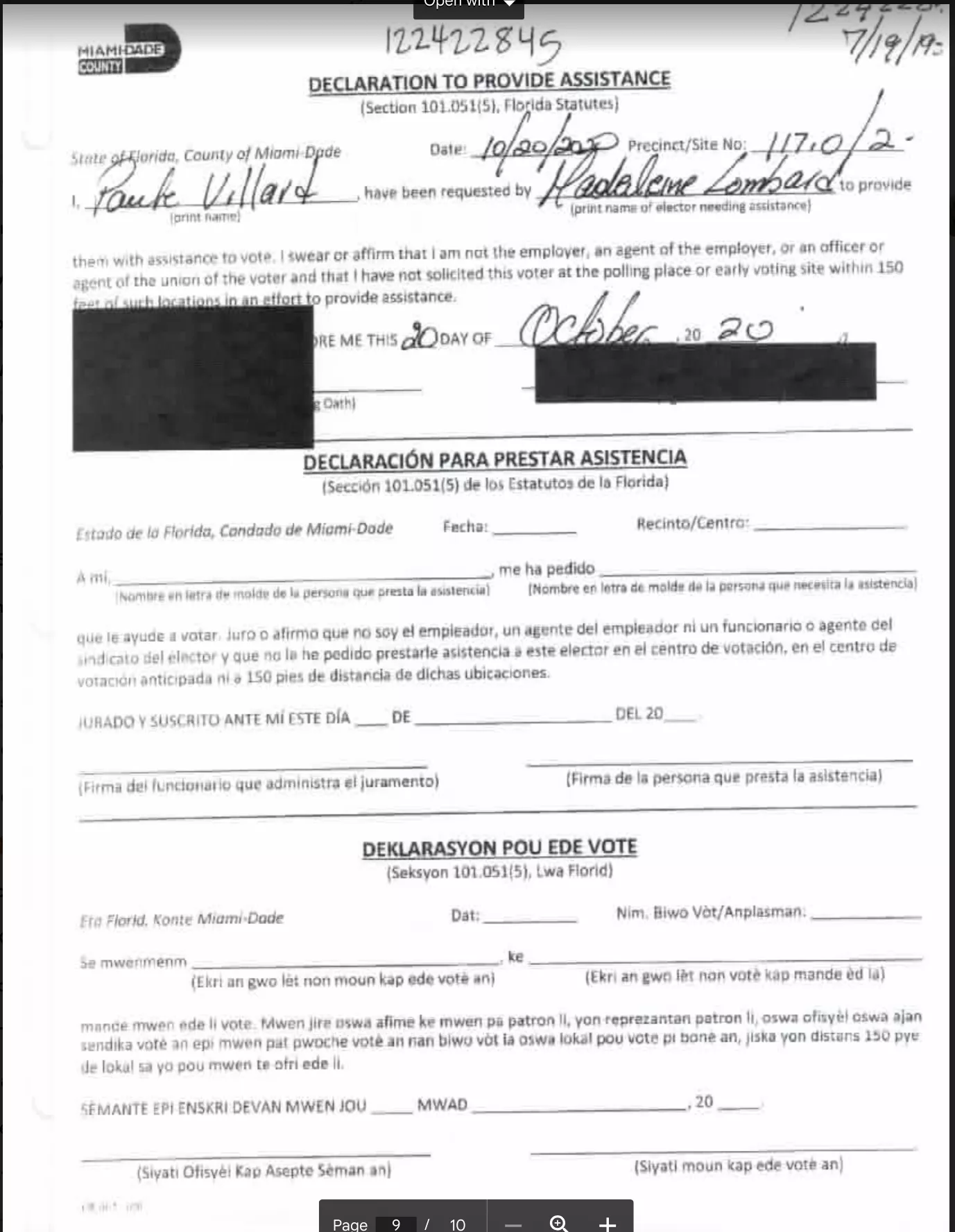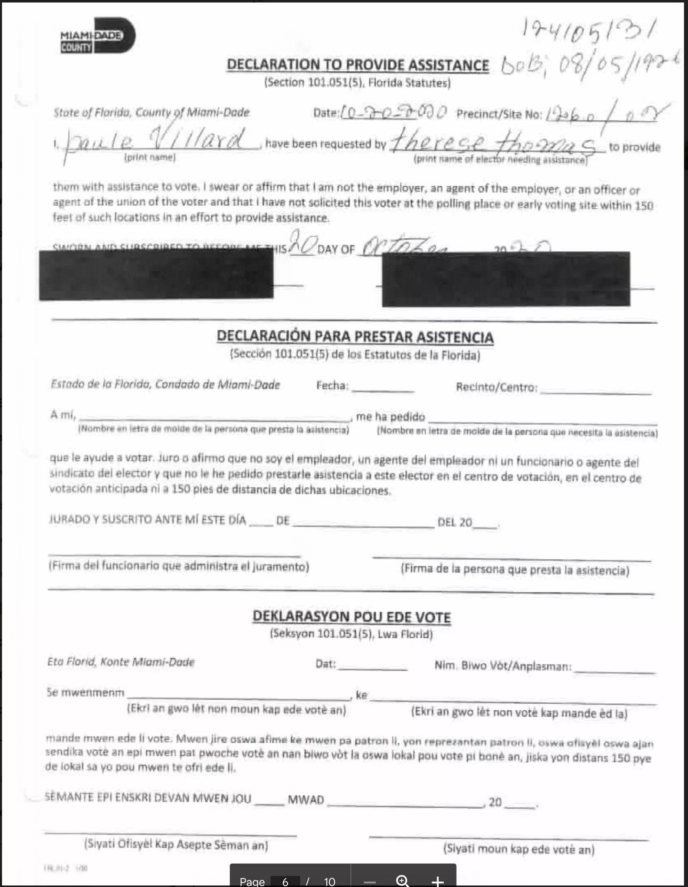 One of the few rules of the ADA forms is that the candidates themselves may not be proxy voters in an election that they are a part of, so Paule reaches out to her criminal network to get people to do her dirty work for her. However, if it is a election in a different city, Paule Villard has no problem being a member of the criminal ring and returning the favor, here is a sample of the ADA forms for the 2020 elections in North Miami where Paule Villard escorted several people into the polls to ensure they voted "correctly". I would not be concerned if I saw her name on one or two of these (especially if it was for a family member) but this is ridiculous.