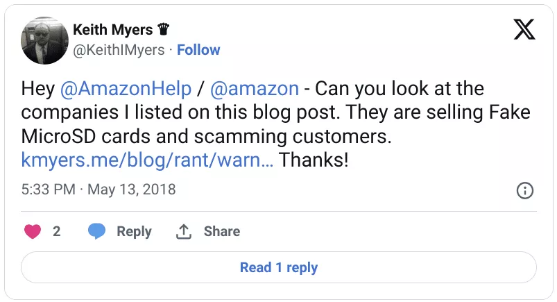 It is also worth noting that these fake MicroSD Cards have also found their way into Amazon’s Ads