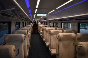 Note: for those in wheelchairs, there is plenty of room and accessibility features on the train. Elevators take the place of escalators and wheelchair access was clearly not an afterthought in the design of the train. The isles on the train will easily accommodate wheelchairs, walkers, strollers, and maybe even a small utility van if you try hard enough.